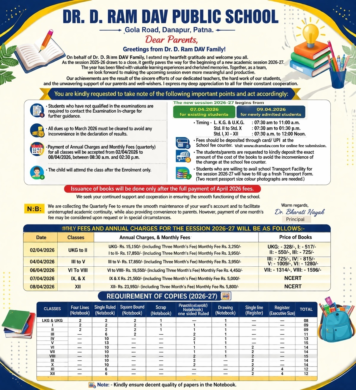 Dear Esteemed Visitors and Cherished Members of the DAV Family,It is with profound pleasure and a heart brimming with pride that I extend a warm welcome to you on behalf of DAV Public School Gola Road, Patna. As we navigate the ever-evolving landscape of education, our institution stands as a beacon of excellence, illuminating the path for young minds